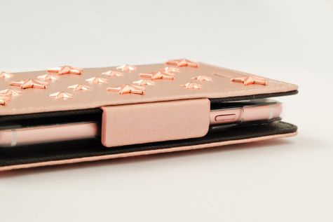 大人気の星形スタッズと上質のPUレザーの手帳型モデルが、iPhone7に対応して登場。